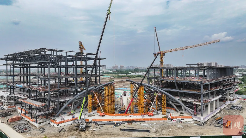 近日,德阳市博物馆建设现场,建设者正在加紧吊装、焊接钢架结构施工。 C视觉 王福明 摄