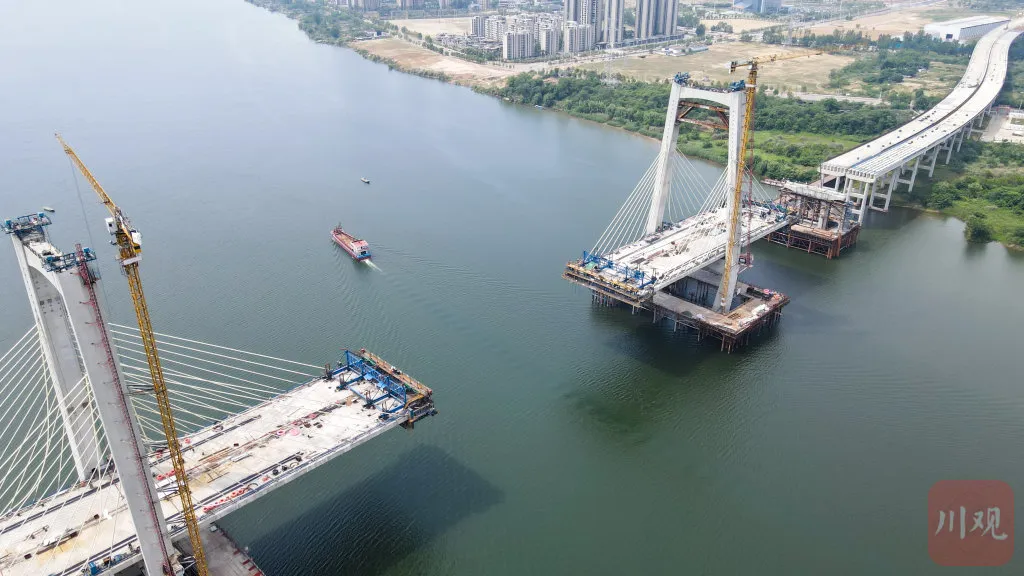 近日,位于四川省南充市高坪区的成南高速公路扩容嘉陵江特大桥建设现场热火朝天。C视觉 杨波 摄