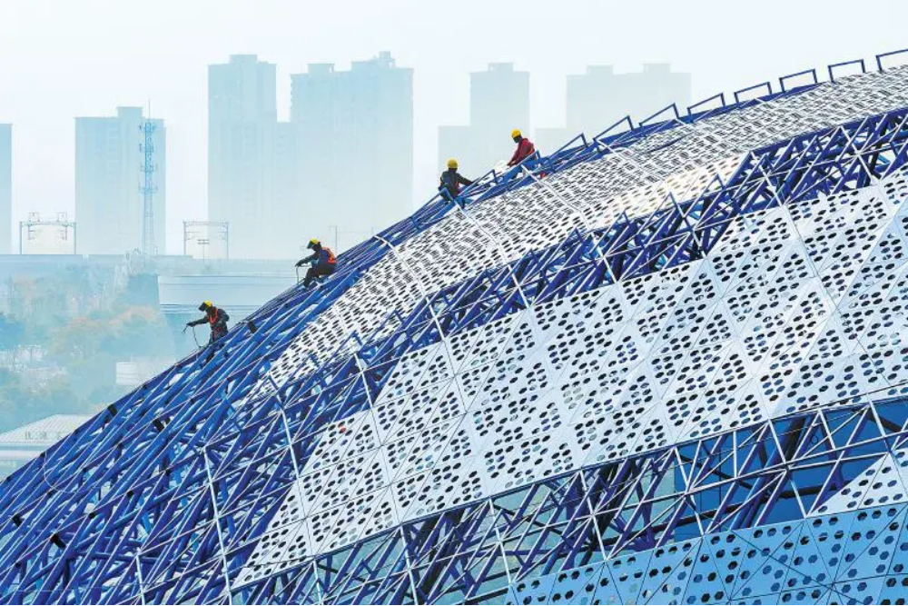 一月十八日,位于成都市成华区北湖生态公园南岛的成都熊猫海洋世界项目正加紧建设。龚全意摄(C视觉)
