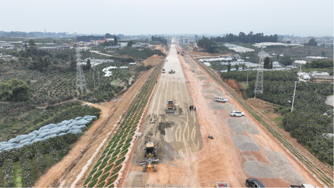 “现在正是冬季少雨的好时机,我们得抓紧这段施工黄金期。”据项目现场负责人陈攀科介绍,目前,施工方正集中进行级配碎石基层作业,力争在春节前完成全线水稳层铺设。整体工期排得清晰紧凑:预计3月开始摊铺沥青面层,全力确保今年6月底实现全线通车。