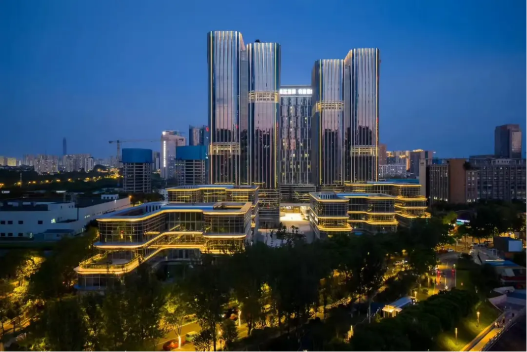 高能级的产业需要高品质的空间来承载。坚持“以产兴城、以城促产”,统筹优化生产、生活、生态“三生”空间,推动园区从单一生产功能区向宜居宜业的现代化产业新城转变。在空间布局上,园区构建“一轴两翼、串珠成链”格局。横向以锦江大道科创动力轴为主干,串联西部脑谷、量子走廊、智简6G大厦等多个特色产业地标;纵向以锦华路、锦阳大道为功能联动轴,融合高品质公共服务与生活配套。通过城市更新、TOD综合开发等手段,打通交通脉络,构建内联外畅、要素高效协同的空间体系。在功能配套上,园区构建“双15分钟”宜居宜业圈。一方面,围绕产业人才需求,精准配置优质学校、特色医疗、人才公寓、智慧社区,打造“15分钟宜居生活圈”;另一方面,围绕创新链需求,建设集共享研发、概念验证、资本对接于一体的产业服务枢纽,打造“15分钟产业服务圈”。