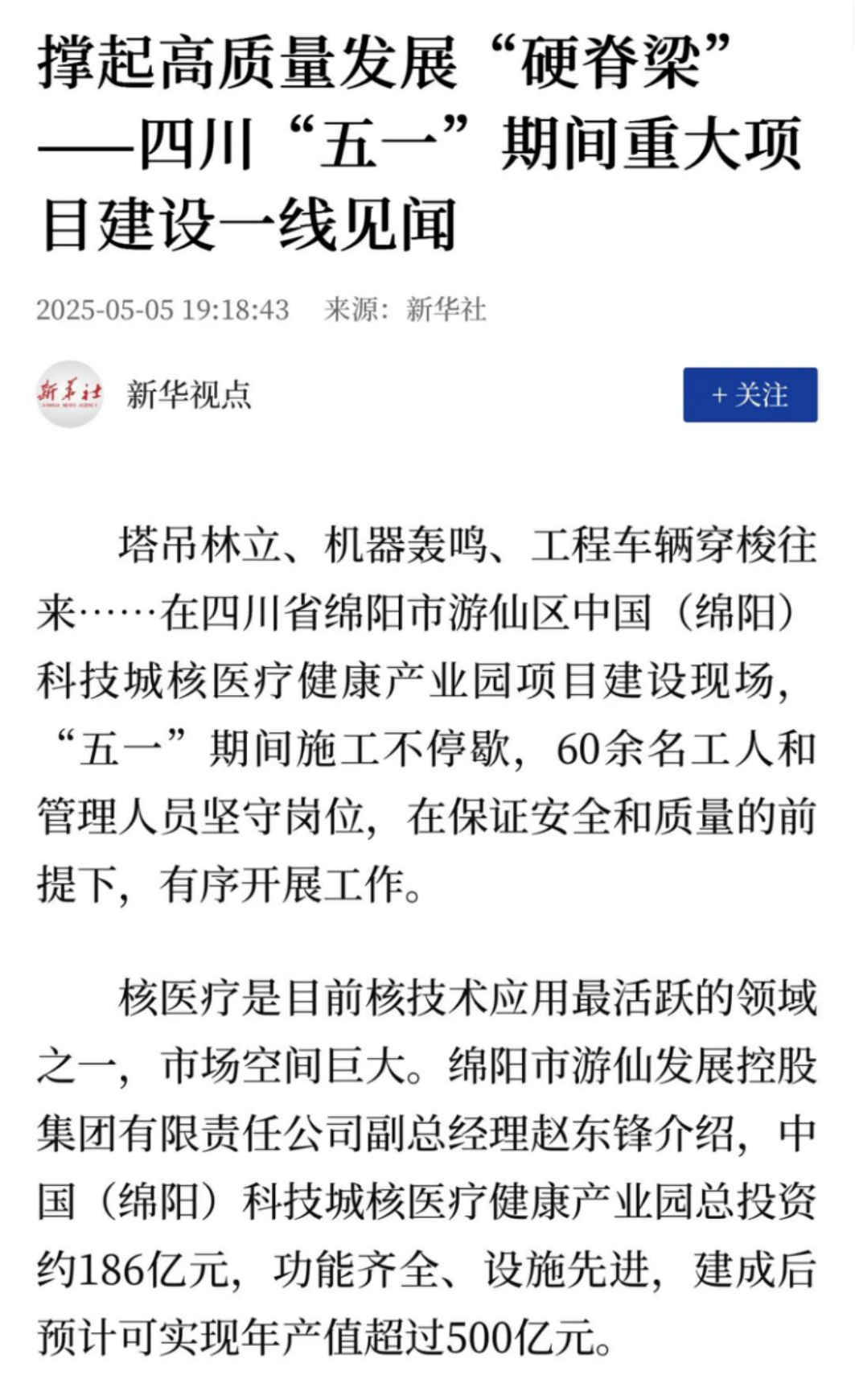 新华社关注了核医疗健康产业园项目建设