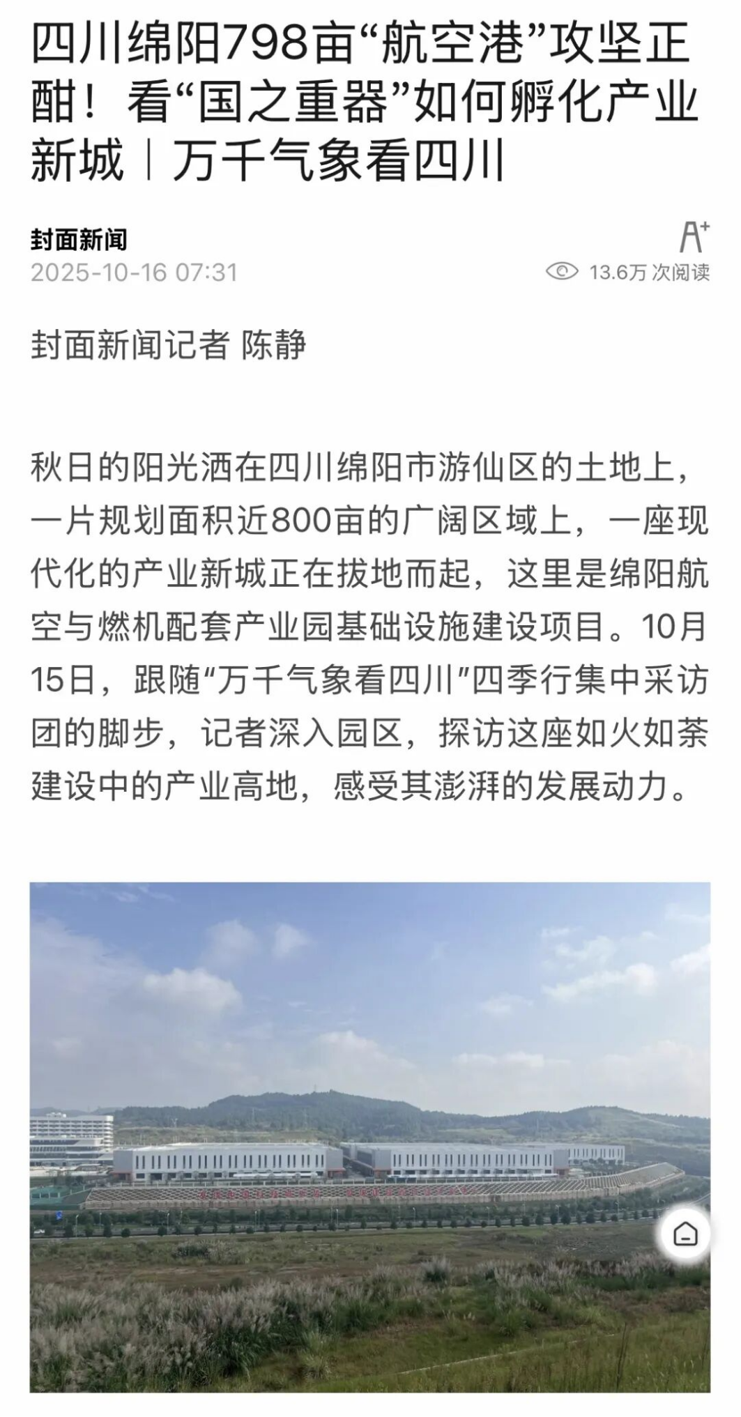 《封面新闻》关注了空天技术应用产业园